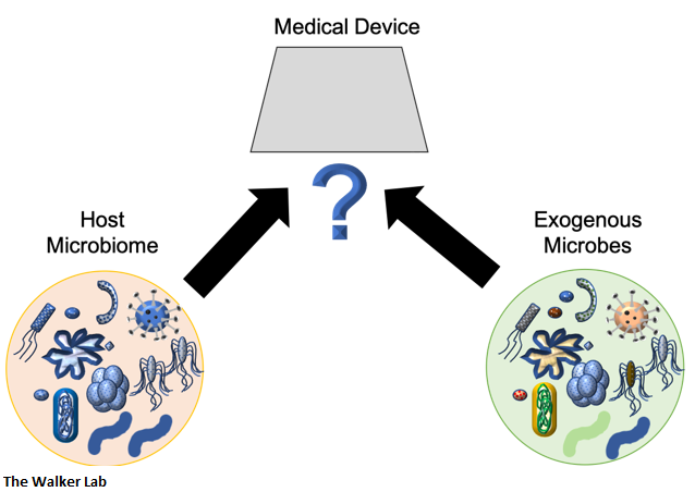 Millions of medical devices are placed every year, and their use is expected to increase due to their efficacy at improving the length and quality of life. However, infection of medical devices is a common, dreaded complication. Our work indicates the device itself induces inflammation, which may prevent the host from mounting an effective response against pathogens, allowing them to cause disease. To define the host-pathogen-device interactions, we combine the use of model systems and patient samples to understand the inflammatory response to devices with and without infection to identify biomarkers that predict infection risk.